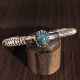 シンプルなシルバーワークにビスビーターコイズをセットした「Kee・Yazzie・Jr」作バングル新入荷!