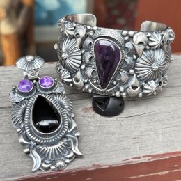一目でわかるアップリケスタイルが人気の「Delbert・Gordon」作スギライト付バングル&ペンダントトップ新入荷!