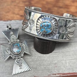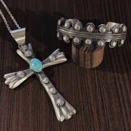 整ったスタンプワークが綺麗な人気作家「Ivan・Howard」作ターコイズ付きバングル&クロスペンダント新入荷!