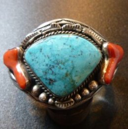 スペシャルコレクション!!70年代のインディアンジュエリーブームの立役者の一人であった故トップアーティストの一人「Gibson・Nez」作代名詞である存在感重量感抜群のレッドコーラル付ボロタイ新入荷!