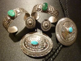 整ったスタンプワークにコンチョアップリケやターコイズをセットしたトラディショナルデザインがワイルド感溢れるベテランアーティスト「Gene・Natan」作バングル計3点新入荷!