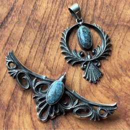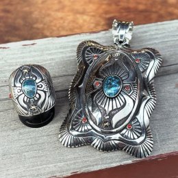 高いオーバレイ技術が垣間見れる大人気トップアーティストの一人「Marco・Begaye」作ジェムグレードローンマウンテンターコイズ付ペンダントトップ&リング新入荷!