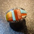 ナバホ Ray・Adakai マルチカラーストーンインレイ&スタンプワーク 1/2インチ幅リング16号