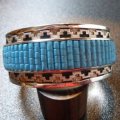 ナバホ Dan・Jackson ラグ柄オーバレイ カットターコイズビーズ バングル約15・5〜16cm用