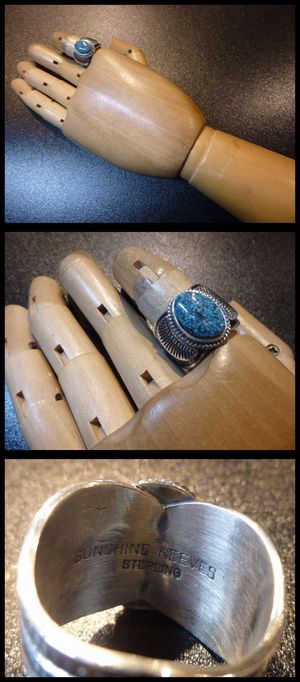 ナバホ Sunshine・Reeves スタンプワーク キングマンターコイズ付 リング19号