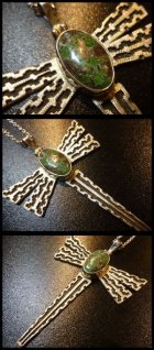 見事なラグ柄オーバレイがデザインされた、ナバホ族のペンダントトップになります。