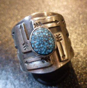 ナバホ Sunshine・Reeves 卍(スワスティカシンボル) キングマンターコイズ付 リング18号