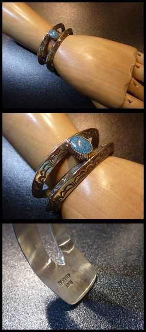 定評あるスタンプワークで仕上がった、ナバホ族のバングルになります。