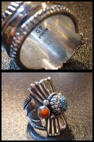 美しいスタンプワークで仕上がった、ナバホ族のリングになります。