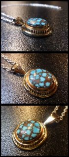 ナバホ Leonard・Nez レッドマウンテンターコイズ付 オール14Kゴールド TOP