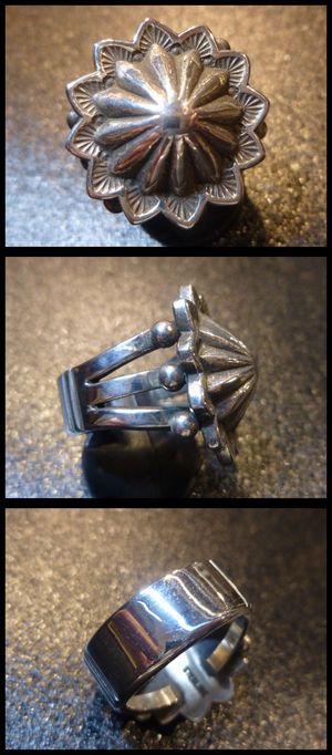 ナバホ Clendon・Pete スタンプワーク ビッグコンチョ リング18号