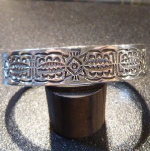 定評あるスタンプワークで仕上がった、ナバホ族のバングルになります。