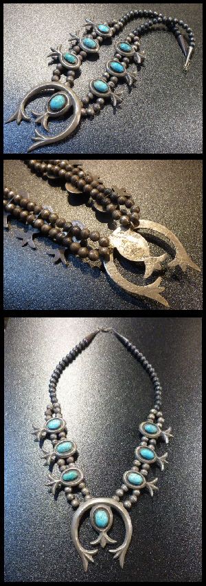 オールドポーンならではの独特なオーラがたまらない、ナバホ族のネックレスになります。