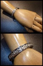 見事なラグ柄オーバレイがデザインされた、ナバホ族のバングルになります。