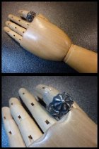 トラディショナルなコンチョアップリケが施された、ナバホ族のリングになります。
