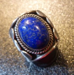シンプルなシルバーデザインにラピスラズリをセットした、ナバホ族のリングになります。