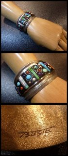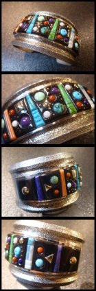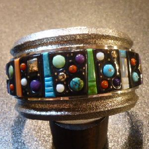 ボイド氏の代表スタイルであるきらびやかなマルチカラーストーンでのインレイワークが、