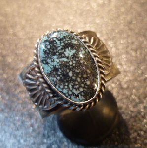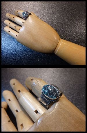 代名詞であるスタンプワーク&ターコイズをセットした、ナバホ族のリングになります。