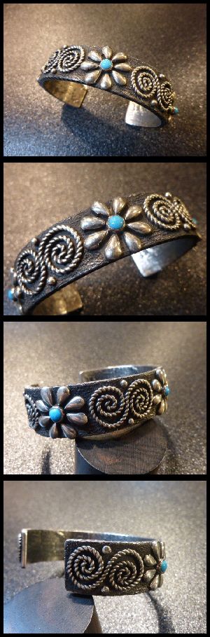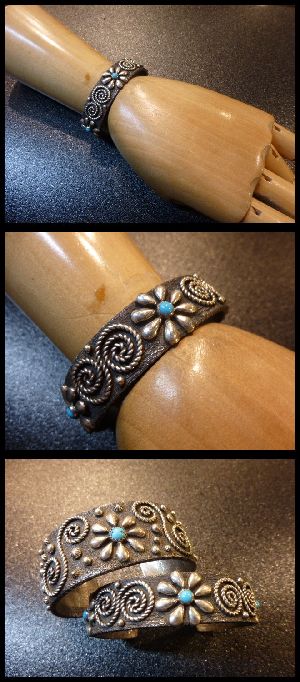 ツイストワイヤーワーク&アップリケで仕上がった、ナバホ族のバングルになります。