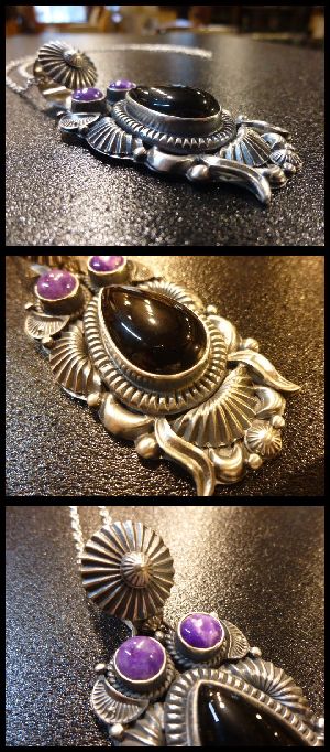 こちらはデルバート氏の得意とするアップリケスタイルを強調させた存在感あるペンダントです。