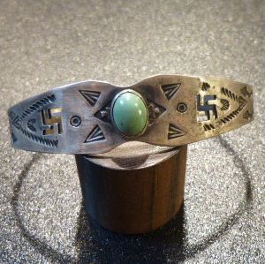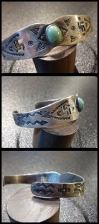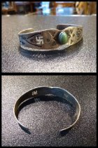 Used・Antique スタンプワーク 卍(スワスティカ)&etc ターコイズ付 バングル約17〜18cm用