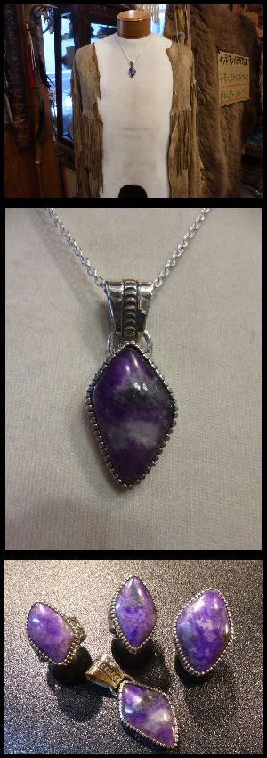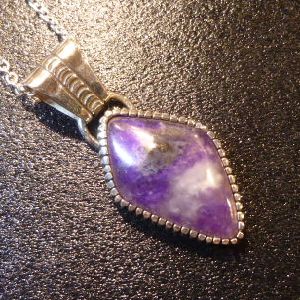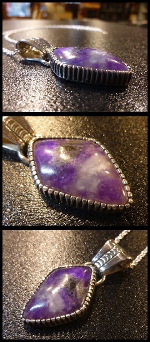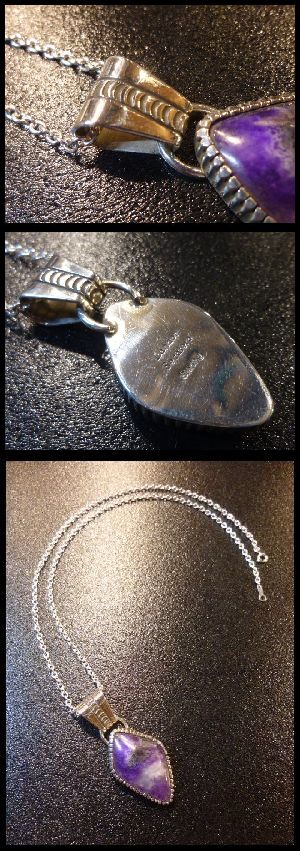 シンプルなスタンプワークにスギライトがセットされた、ナバホ族のペンダントトップになります。