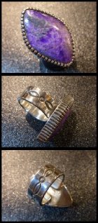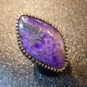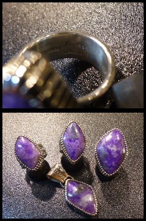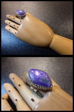 シンプルなスタンプワークにスギライトがセットされた、ナバホ族のリングになります。
