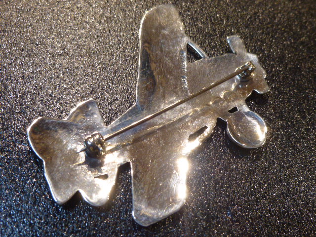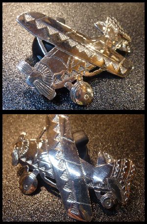 ユニークなヒコウキをモチーフにした、ナバホ族のピンブローチになります。