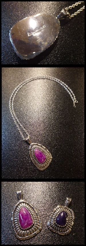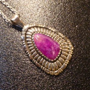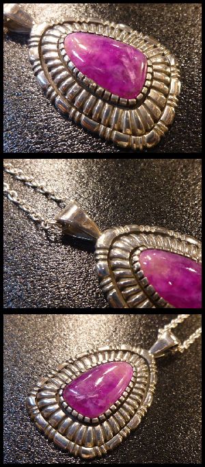 ホーム | ↓ナバホAll・Artist > ペンダント&ネックレスナバホ Bitsoi・Russell チゼルワーク スギライト付 TOP