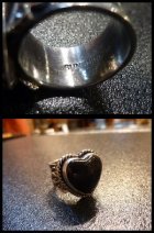 ナバホ Sunshine・Reeves スタンプワーク ハート型ブラックオニキス付 リング14号