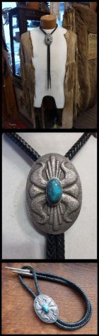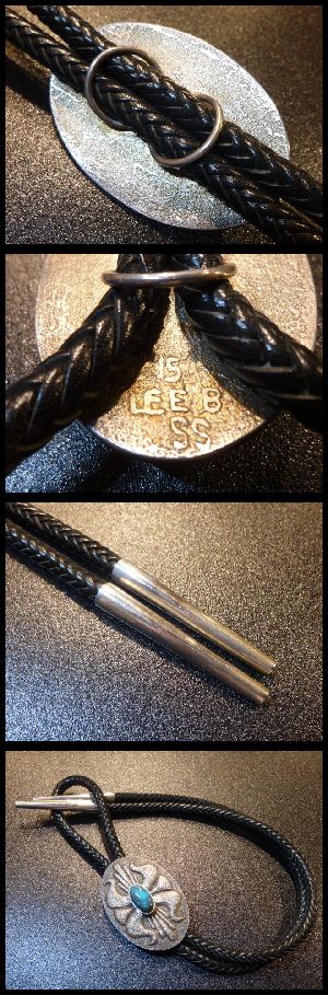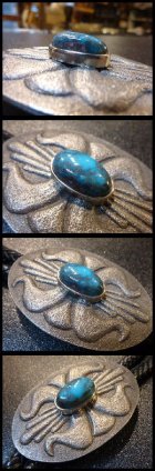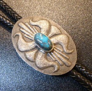 美しいビスビーターコイズをセットした、ナバホ族のボロタイになります。
