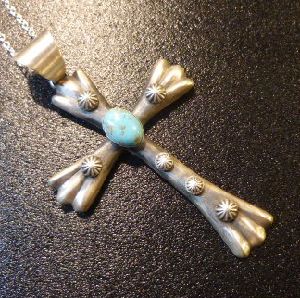 ナバホ族のクロス型ペンダントトップになります。