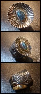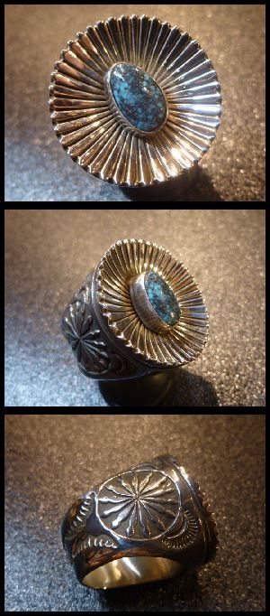 美しいサンバーストをデザインした、ナバホ族のリングになります。
