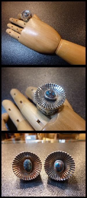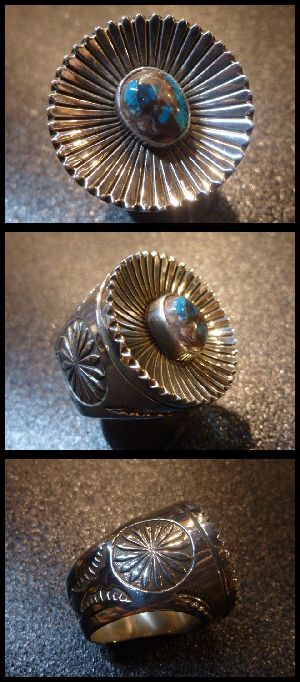美しいサンバーストをデザインした、ナバホ族のリングになります。