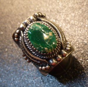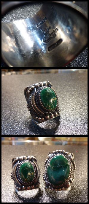 整ったスタンプワークにバリサイト(ブロッケンアロー)をセットした、ナバホ族のリングになります。