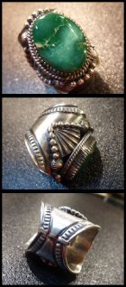 ホーム | ↓ナバホAll・Artist > リングナバホ Delbert・Gordon スタンプワーク&アップリケ バリサイト(ブロッケンアロー)付 リング22号