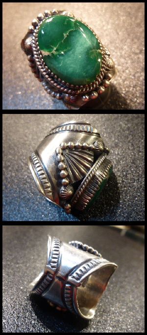 整ったスタンプワークにバリサイト(ブロッケンアロー)をセットした、ナバホ族のリングになります。