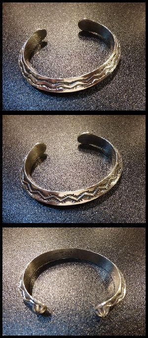 シンプルなトライアングル型で仕上がった、ナバホ族のバングルになります。