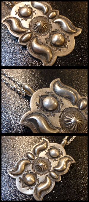 一目でわかる美しいスタンプワークで仕上がった、ナバホ族のペンダントトップになります。