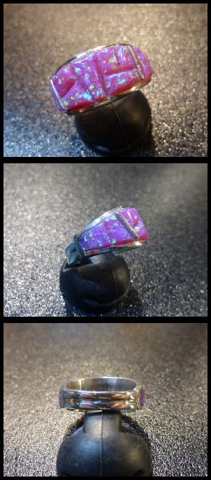 ナバホ Edison・Yazzie インレイ ピンクオパール リング13・5号