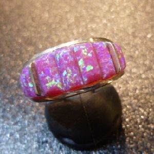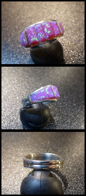 ナバホ Edison・Yazzie インレイ ピンクオパール リング16号