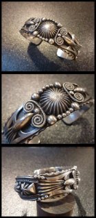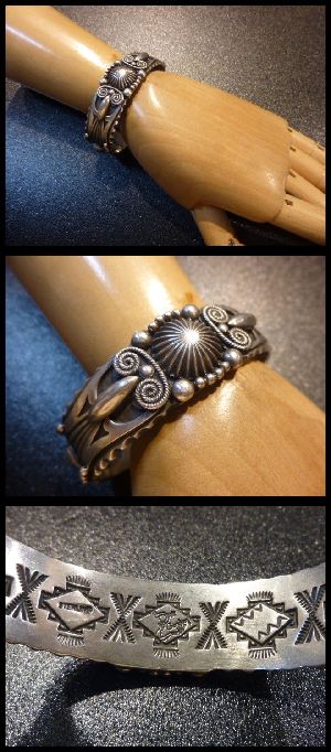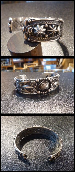 人気のコンチョアップリケで完成されたナバホ族のバングルになります。