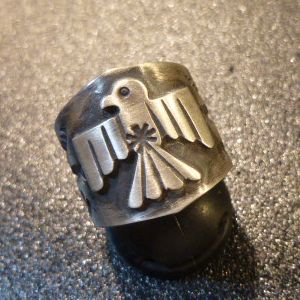 人気のサンダーバードをデザインした、ナバホ族のリングになります。