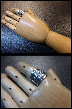 こちらはセンターにサンダーバードをモチーフにしたフレッドハーベイスタイルリングになります。