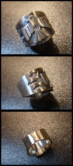 ナバホ Sunshine・Reeves スタンプワーク&サンダーバード リング23号