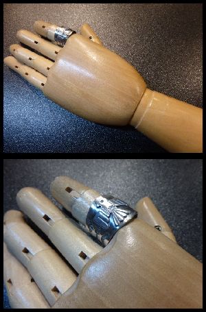 こちらはセンターにサンダーバードをモチーフにしたフレッドハーベイスタイルリングになります。