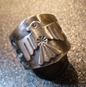 人気のサンダーバードをデザインした、ナバホ族のリングになります。