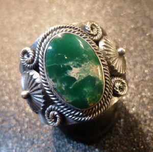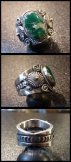 トラディショナルなスタンプワークで完成された、ナバホ族のリングになります。