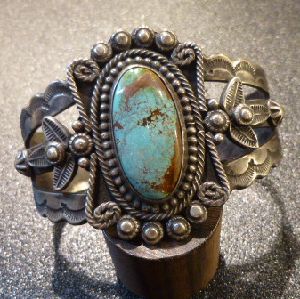 ナバホ 50〜60年代Antique スタンプワーク&アップリケetc ロイストーンターコイズ付 バングル約16〜17cm用