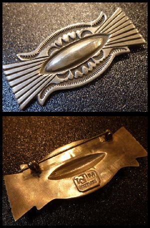 トラディショナルなデザインで完成された、ナバホ族のピンブローチになります。